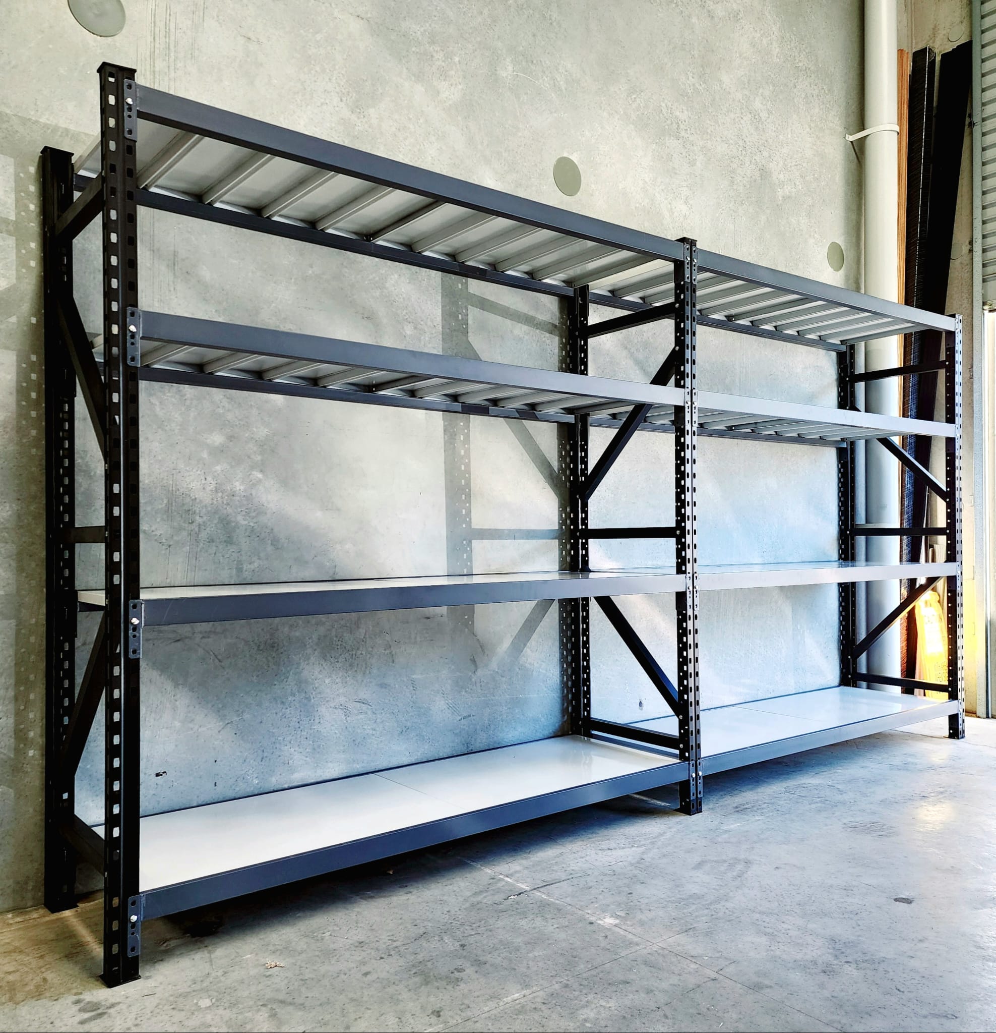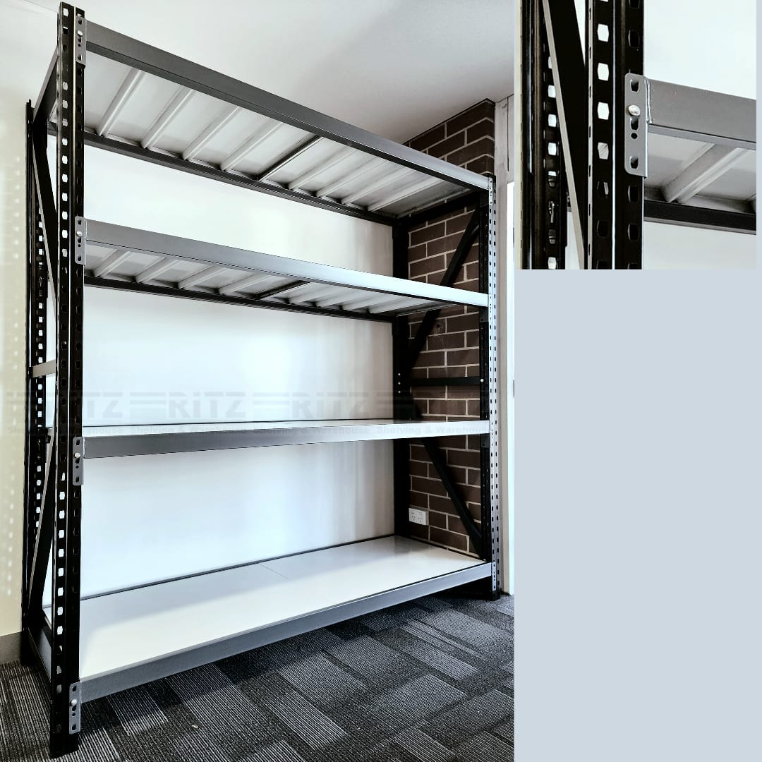 These 3 pin lock long shelving units are very sturdy and better quality than basic 2 pin system. They also have better reinforced shelf panels, wider uprights and also wider square braces. These are suitable for Warehouse, Shop, Office, Garage, Shed, Home, and other general storage needs. Uprights include braces that need to be bolted for strength and sturdy. Beams are fully adjustable and include safety pins that give greater peace of mind. Add-on bays are also available to make a longer span.