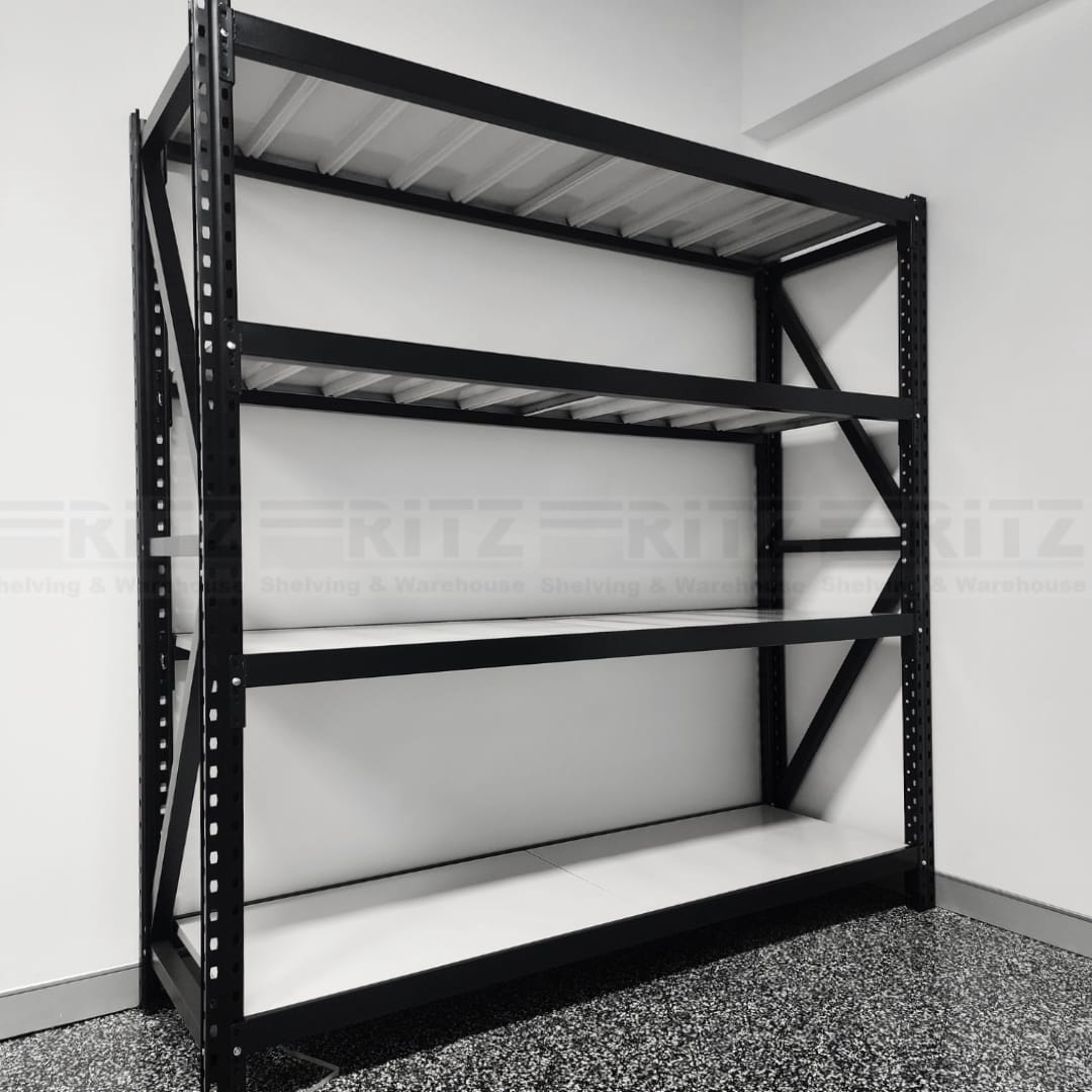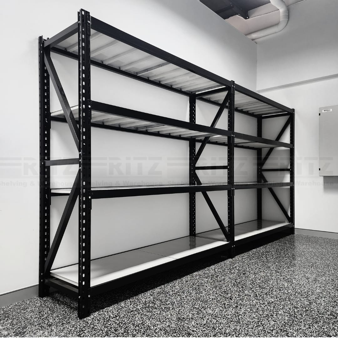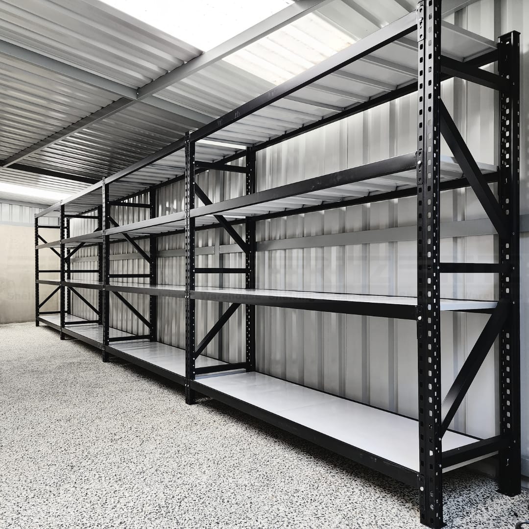 These 3 pin lock long shelving units are very sturdy and better quality than basic 2 pin system. They also have better reinforced shelf panels, wider uprights and also wider square braces. These are suitable for Warehouse, Shop, Office, Garage, Shed, Home, and other general storage needs. Uprights include braces that need to be bolted for strength and sturdy. Beams are fully adjustable and include safety pins that give greater peace of mind. Add-on bays are also available to make a longer span.